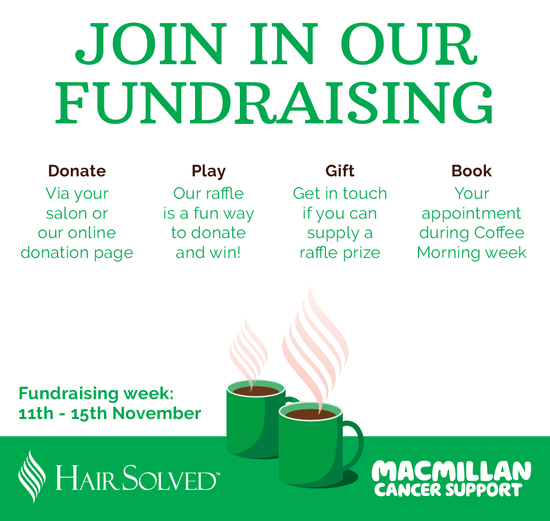 We’re so excited to be hosting Macmillan Tea & Coffee Mornings across all our salons this November.